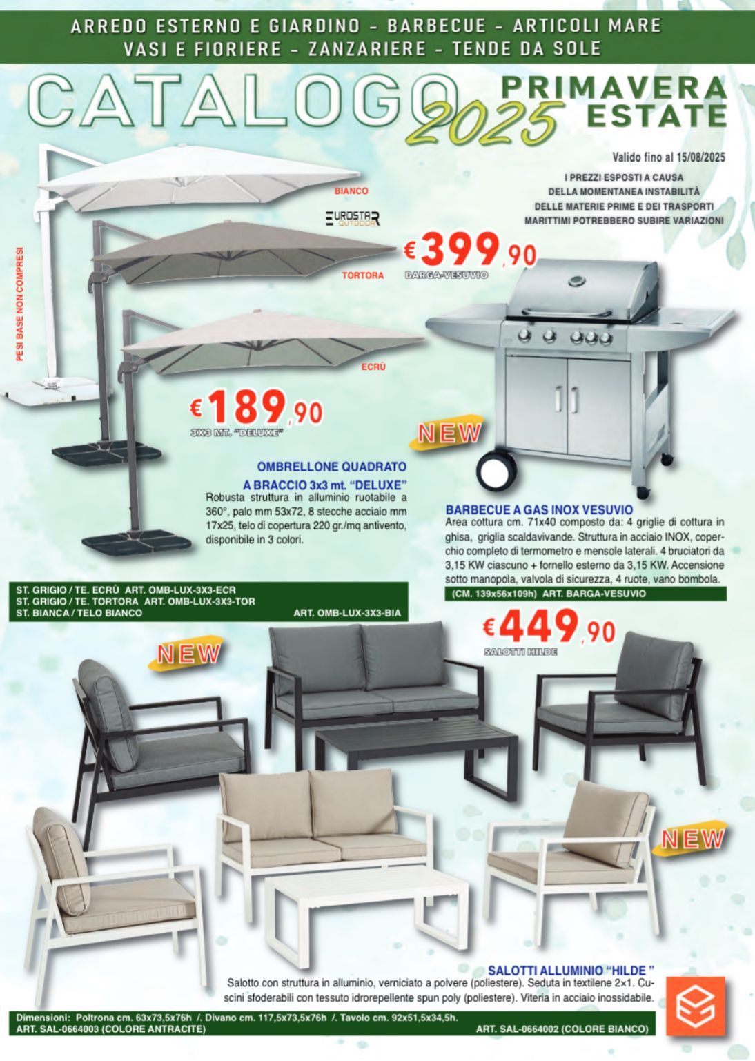 Su barbecue, forni, prodotti per giardinaggio, tavoli e sedie